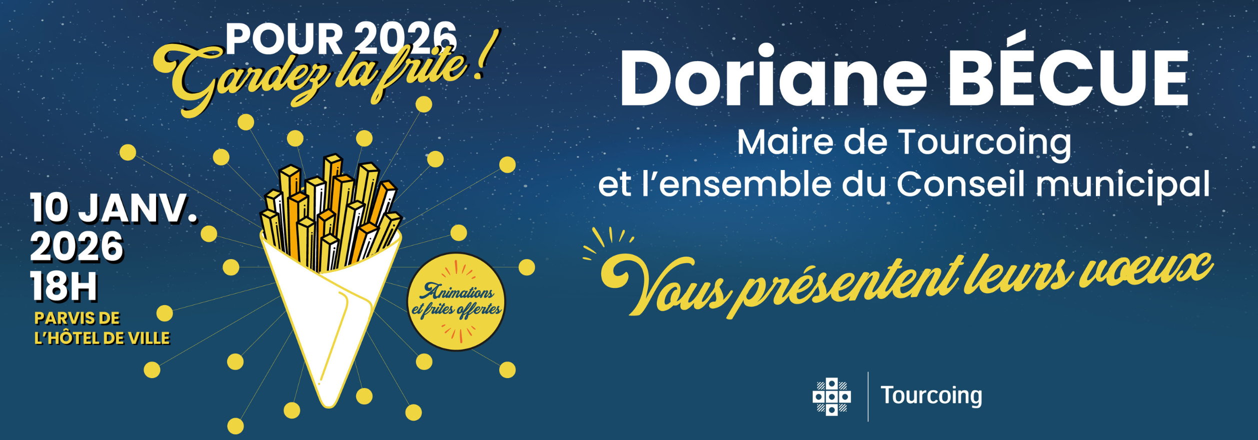 La traditionnelle cérémonie des vœux de la Ville de Tourcoing fait son retour le samedi 10 janvier 2026 à 18h sur le Parvis de l’Hôtel de Ville ! Depuis 2015, la cérémonie des vœux à la population a lieu sur le parvis de l’hôtel de ville, la première quinzaine de janvier, avec une rétrospective vidéo […]